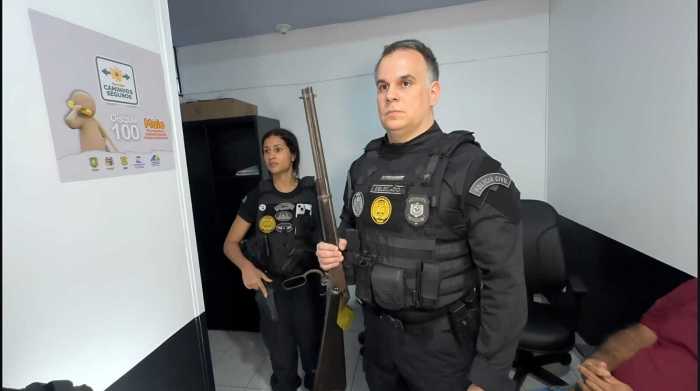 Durante o cumprimento dos mandados, além de equipamentos eletrônicos, os agentes apreenderam uma arma de fogo em posse de um dos investigados, o que agrava a situação penal dos suspeitos.
